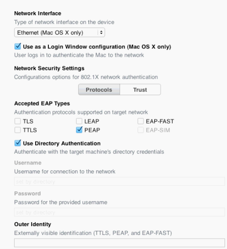 Since the big part of the configuration is the Network Payload part, I've attached the screenshot of my setup in Profile Manager.