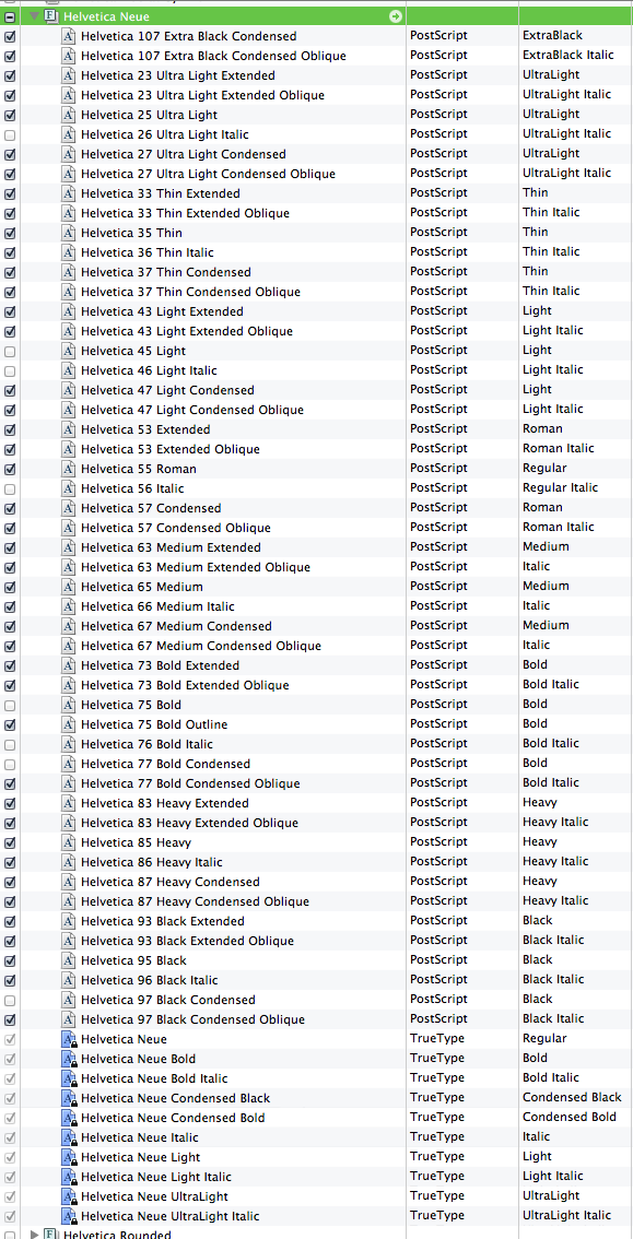 Here's what my Helvetica Neue Folder now looks like: