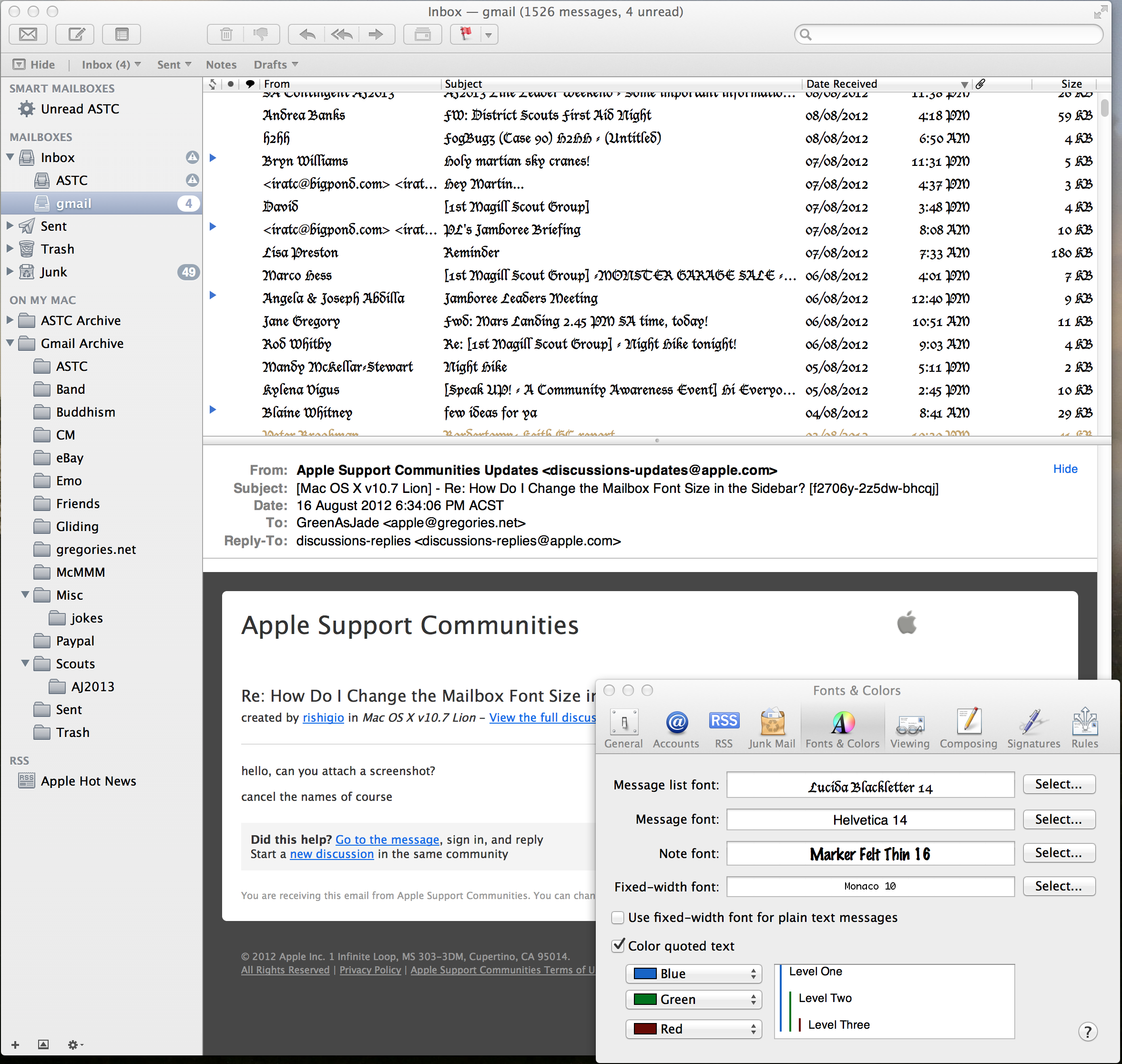 I'm not sure what you're responding to. Bob H. above pointed out a clear bug in changing the Mail list font when he went to Mail/Preferences/Fonts & Colors and changed the font setting for the Mail list (second column), and it didn't work.