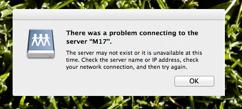 I use to have my MBP17" laptop connected via wifi to my MacPro. If my laptop was off, I would often get this dialog telling me that M17 was missing.
