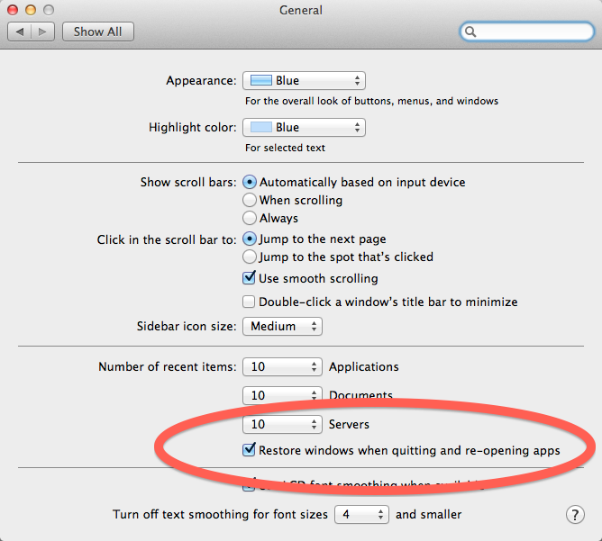 6. Now, test that it works. Close the ‘Get info’ window and the finder window. Open up Safari, Preview and a couple of windows. Do a restart and behold — if you followed the instructions correctly — a clean desktop!