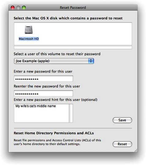5. The Reset Password Utility will open:
