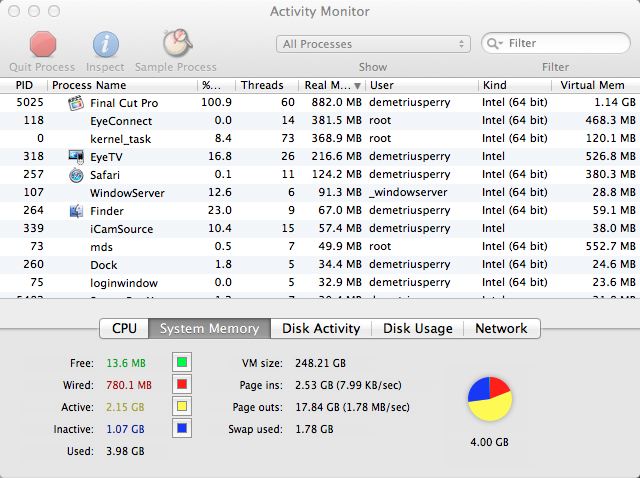 Things may get better if you shut down the other memory-consuming apps such as EyeConenct, EyeTV, Safari and iCamSource.