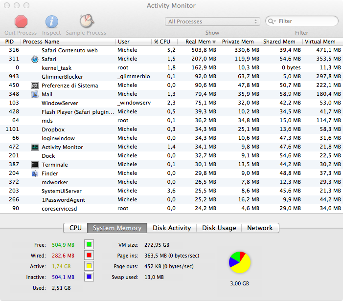 14.843 page outs (64MB), 832KB of swap used. How did I make it? I started a virtual machine, I waited for it to raise the swap used value to 130MB and then I logged out. After that the cumulative page outs obviously didn't change and the swap used went back to less than 1MB. I did it without even thinking!