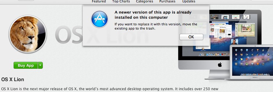 My mac came with lion installed. Now if I go to the app store either it says installed or if I press the option key it asks me to Buy. I have tried all the suggestions in this discussion. How can I re-download lion?