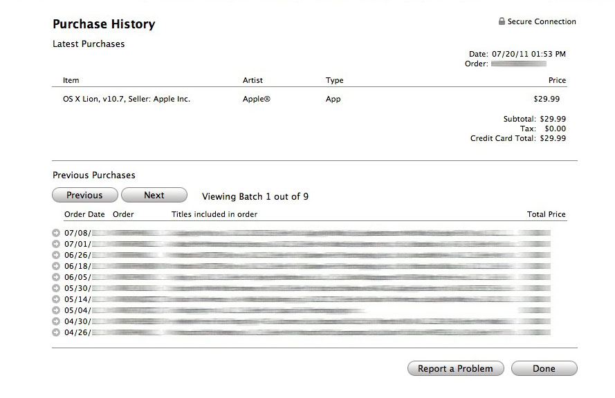 As you can imagine, with the launch of the new OS X Lion, our system has experienced a higher than normal volume of traffic. This has caused some irregularities within the Mac App Store, including with our automated billing system. Please know that Apple is aware of the issue and is currently working towards a resolution.