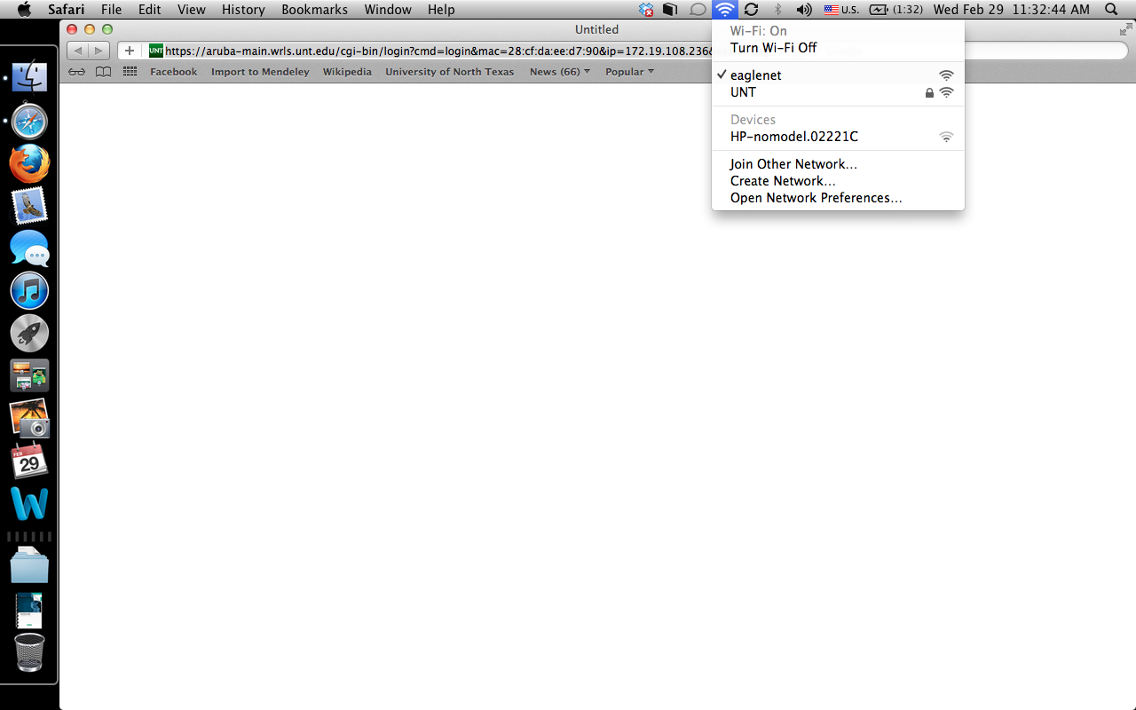 4. When I open firefox, it will take me to UNT Eaglenet log in website where, once I put the uername and password, I can access internet. Now if I open safari, mail or itune, they can access internet withut getting stuck.