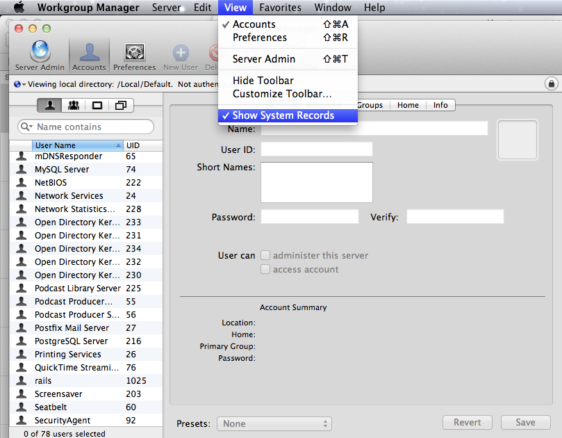 How to connect to embedded POSTGRESQL on Mac OSX Lion Server