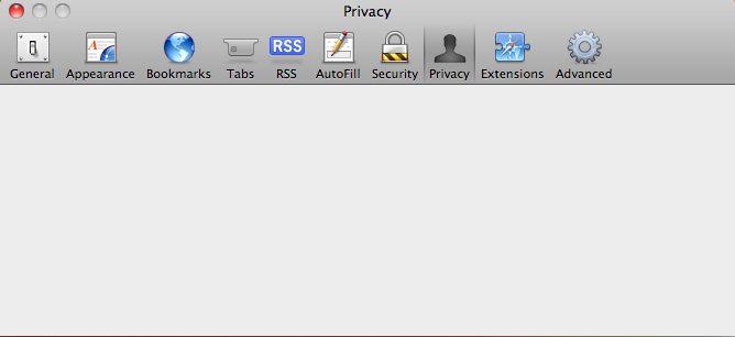 Blank Privacy, Extensions Window in Prefs. in Safari 5.5 running OS X 10.6.8