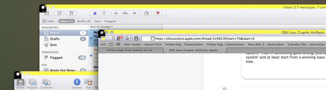 Hello, after i've installed OSX Lion on my iMac 2011 27°, i started getting strange graphical artifacts on my desktop as you can see in this screenshot. http://t.co/5EXmRfL