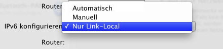 After that you see a screen that seems equal to the network screen that you can find under "system preferences" now choose IPv6 and on the next input screen choose between "automatic" "manual" or "off".