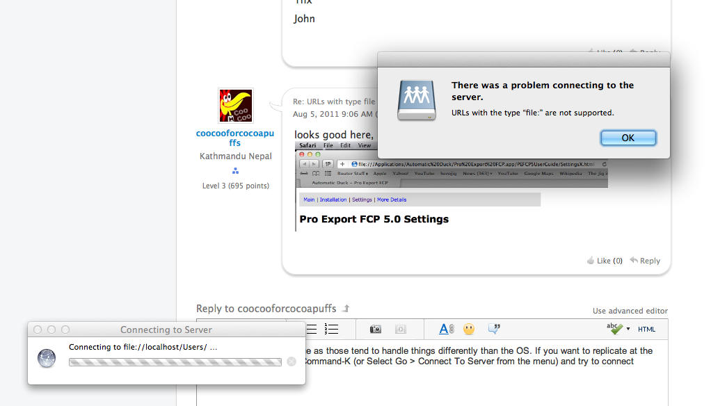 URLs with type file are not supported? Keep having this window pop up after installing lion...