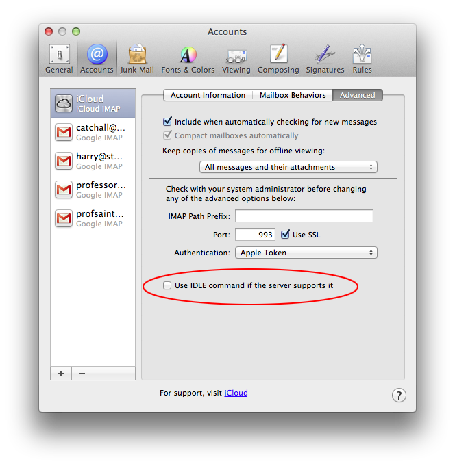 I'm using Mail with two IMAP accounts (oneis gmail), and I'm experiencing a little weirdness.