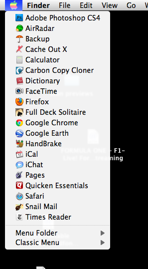 "I have 5 macs out in the lab and 5 aliases to their desk top in my fruit menu. A single click and I am on the desktop of the networked mac where I can drop things my people need. Can anybody please suggest how I can do this without fruitmenu. What is the native Mac alternative? (Obviously I don't want 5 alias icons cluttering up my own already cluttered desktop.)