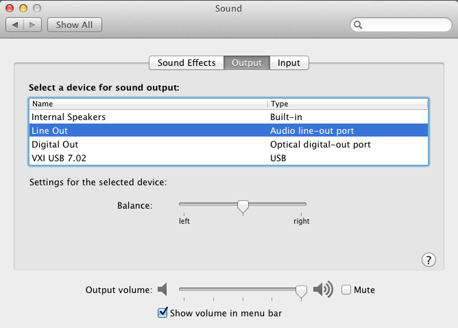 The present situation with the Menu Bar Volume Icon and Vertical Slider is that with the above Internal Speaker setting the Icon shows 2 Bars and the Slider is in what seems to be a reasonably accurate position. Whilst the Menu Bar Volume Icon and Vertical Slider with the above Line Out setting the Icon shows the maximum 3 Bars and the Slider is at the top end of it’s track.