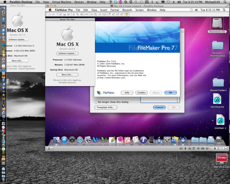 iMac 21”5, i7, 2.8 GHz, 12 Gbytes, 1 Tbytes, mac OS X 10.6.8 and 10.7.3