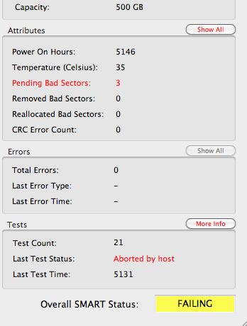 BTW, the drive is Samsung 500GB disk. I did a DIY upgrade of my MBP's disk to upgrade to this disk a few years ago, so I'm not using the original drive from Apple.