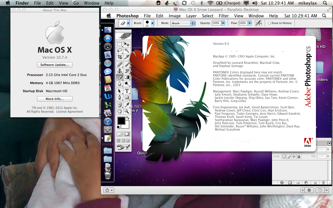 Photoshop CS working concurrently with Lion (or Mt. Lion) with Snow Leopard (and Rosetta) installed into Parallels: