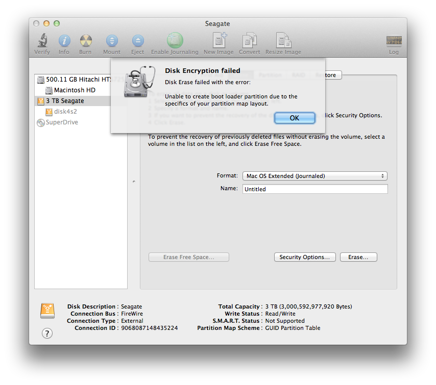 filevault 2 "Unable to create boot loader partition due to the specifics of your partition map layout."