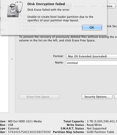filevault 2 "Unable to create boot loader partition due to the specifics of your partition map layout."