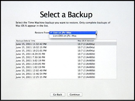 If there were Snow Leopard backups there, you'd just select the one you want.