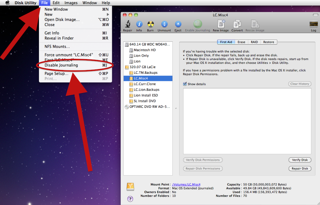 Since my upgrade to Lion I am not able any more to partitionering my HD to HFS+ NON JOURNALED.