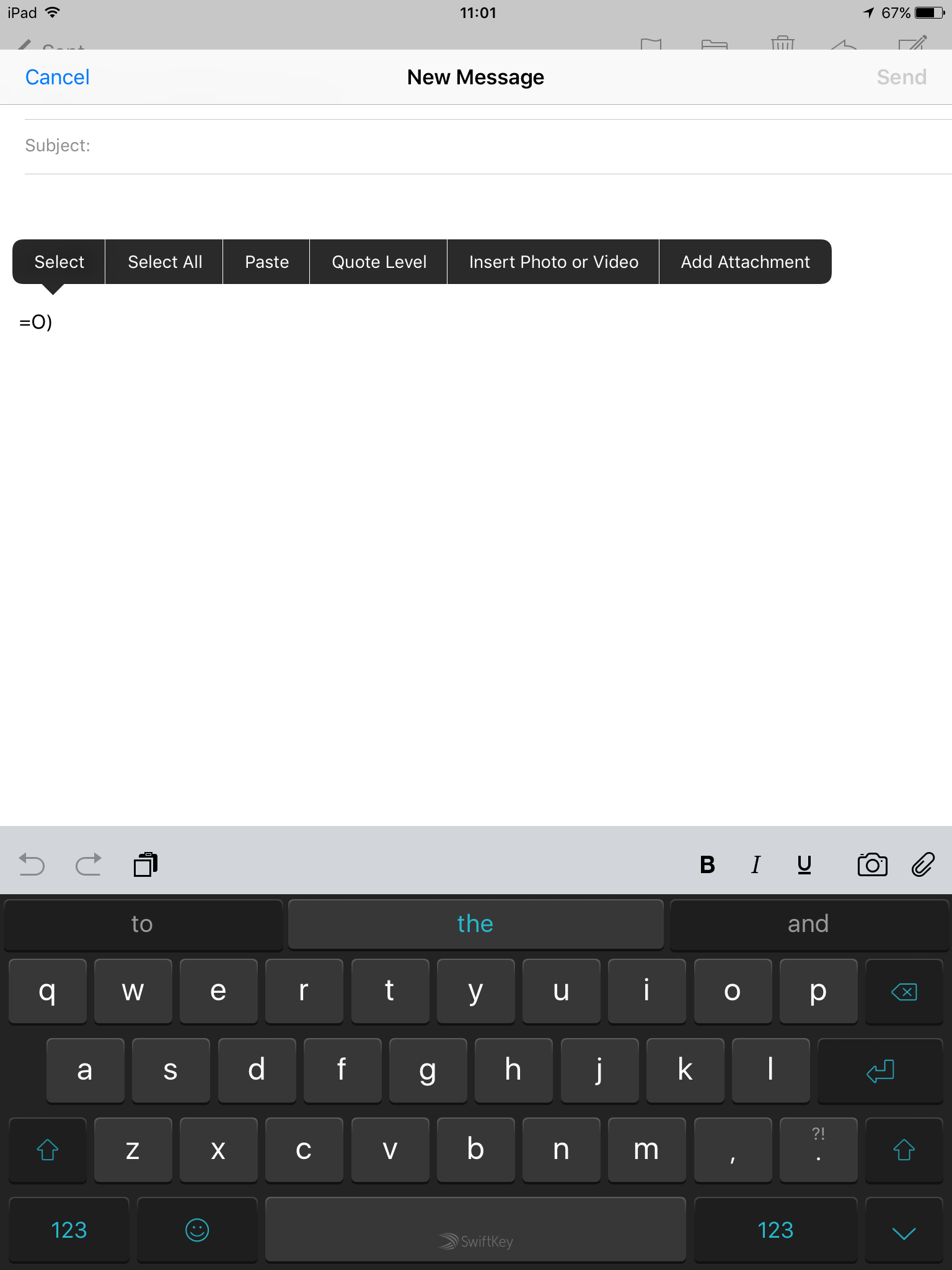 So basically once you click on reply hold down on the screen where you would type so that all those 'cut' 'paste' icons come up and click right on there to get to the end of the icon list and you should find th icon 'Add attachment'.