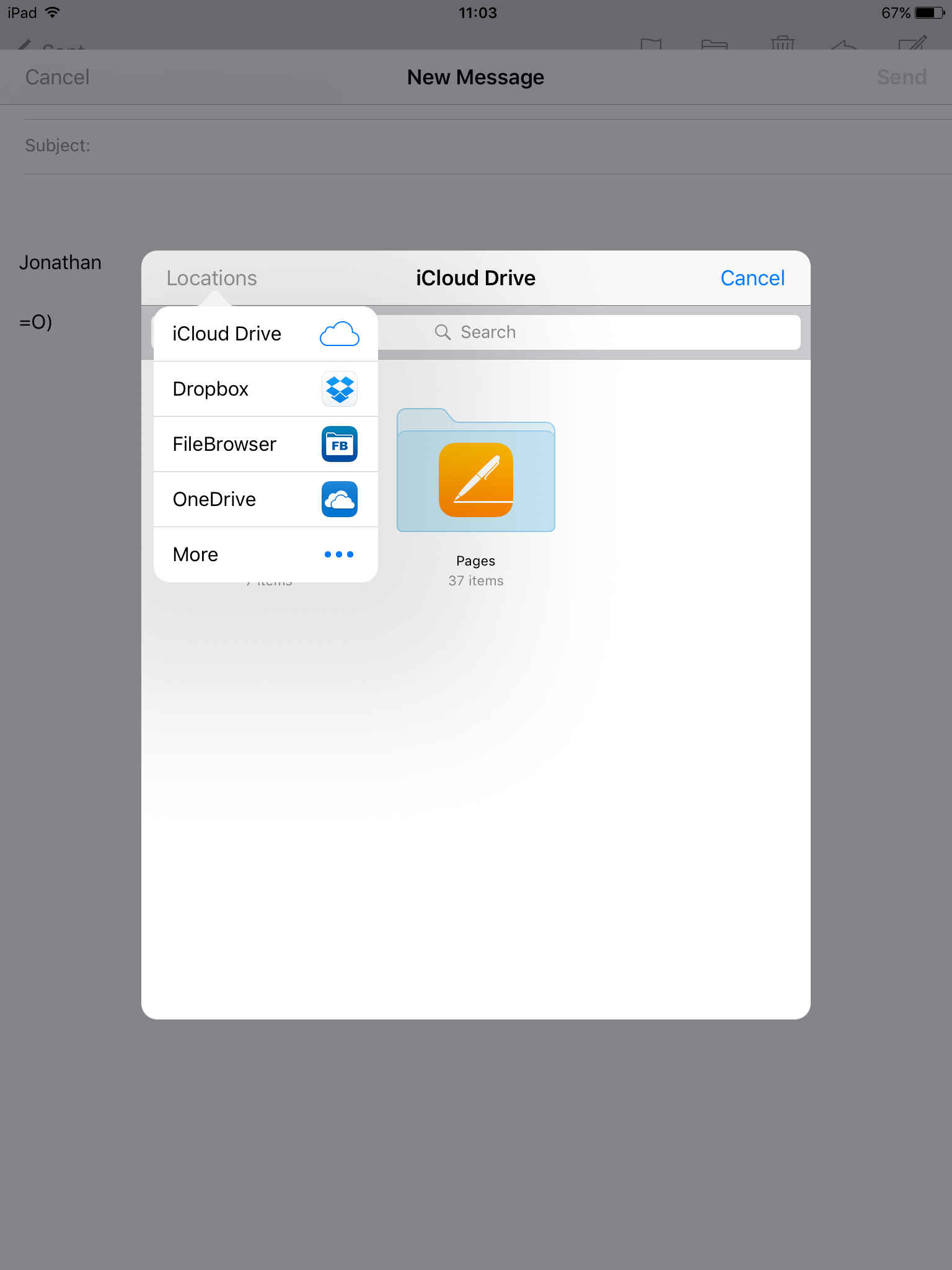 Consequently, if you save to your iCloud Drive the file you want to attach then you can navigate to and select it from within this dialog box.