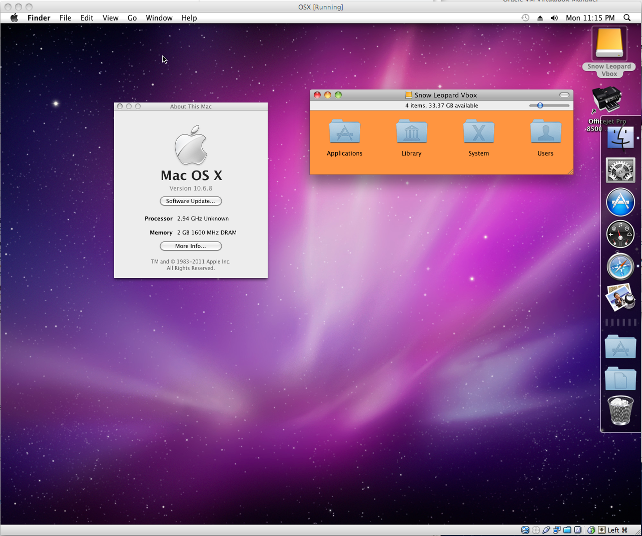 While the entire process eventually worked, it did require a lot of fiddling and trying different things out. Figuring out how to change the screen size took a bit of Internet slewthing, but the information was there. However, I never had to modify disk images to make VirtualBox think I was installing Snow Leopard Server or do anything really arcane. Whether or not I could repeat the process easily, I really don't know. But indeed running Snow Leopard in a VirtualBox is possible and at no time did I encounter any indication that only Snow Leopard Server could be installed.
