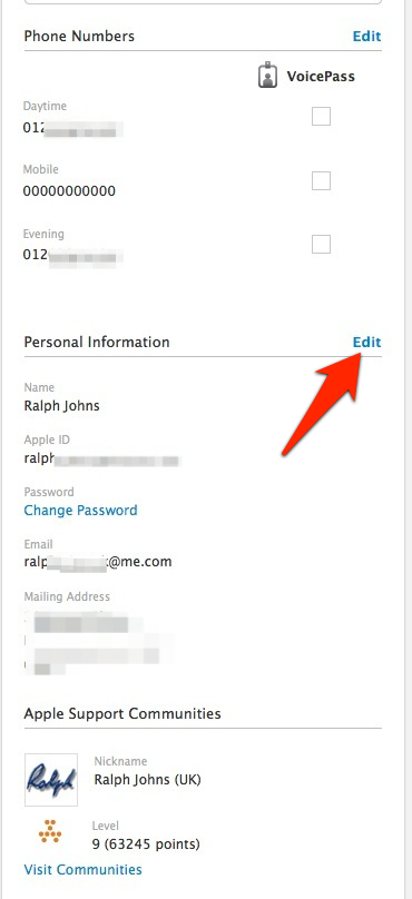 The Edit Link now takes you to your Apple ID page - previously you could edit things on this Page like it shows you can for the Password.
