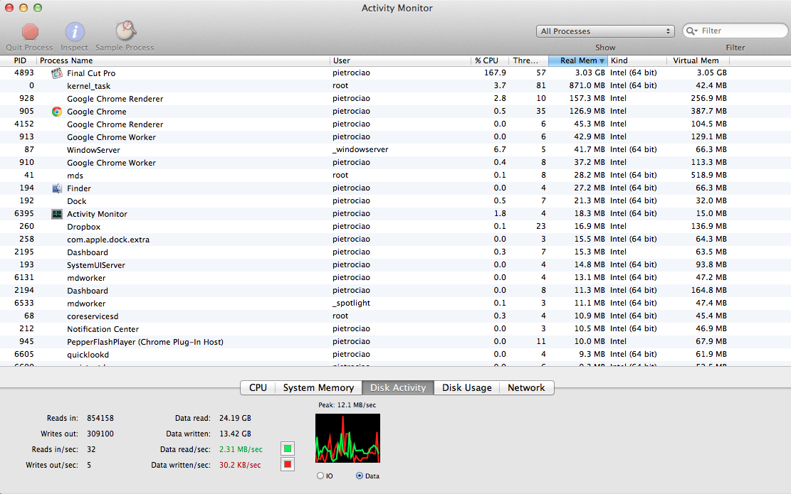 Applying a single color filter to a clip in the timeline, for example, instantly eats up ALL of my RAM (according to the program iCleanMemory). The same thing happens when I try to export a single clip, much less a lengthy project. This actually happens with Motion 5 as well. Basically, everything about the new FCP X and Motion 5 uses ALL of my RAM. Despite this, and despite some of the current FCP X shortcomings (and the fact that one can no longer round-trip to and from Motion), I do like the programs. But this RAM consumption is slowing production to a complete halt. ALL of my specs exceed the minimum requirements for these programs on the Apple website.