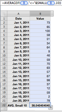 A2: =AVERAGE(Best 10 of Last 20 :: D)