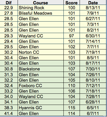 I added a score today and it took care of eliminating an older differential in the calculation. What's great about this is I can just keep adding scores on and not worry about eliminating any of them. It will be so much easier for my spreadsheet challenged golfing friends to use.