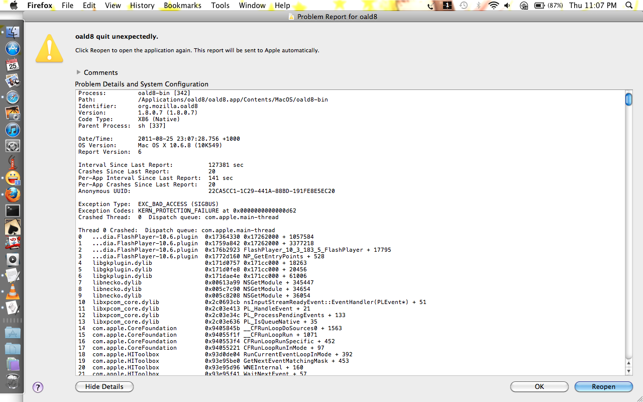 Although I 've used oald8 for a long time, I couldn't open it recently. I thought the problem came from oald8, I reinstalled oald8 but it still doesn't work. When I click to open, it is said that " oald8 quit unexpectedly". I have Quicktimeplayer ver 10.0, what should I do to open oald8? Please help me. Thank you.