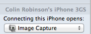 I've read a few times about people with this issue having the problem of devices not showing up in the list and therefor this doesn't work. I've found that if I plug in a device that doesn't show up in the list, then simply exiting Image Capture and relaunching it will cause the device to show up.