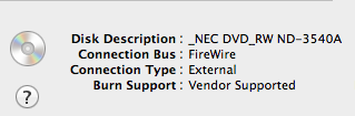 Did their reply also include the discrecording tool I linked to? I still have it on my iMac because it was installed years ago - don't know if it is actually working - but the burner works and is recognized in Disk Utility - mind you, I bought this in 2004 or 2005 and except as noted previously, I've never installed any software or anything else: