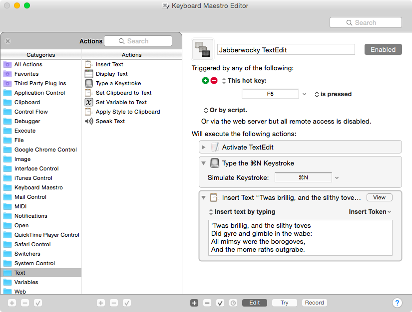 Record a series of keystrokes and then replay them