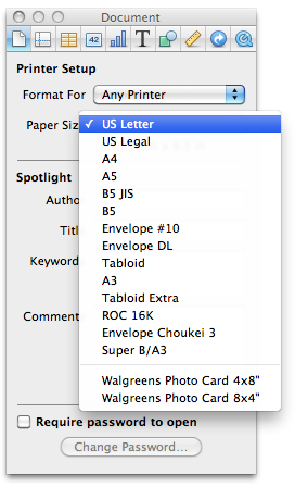 Most mac software is document centered... meaning that for WYSIWYG (What You See Is What You Get) to work you have to select a paper size for your document. The paper sizes are available from the driver (I think) as the printer generally can handle specific types of paper.