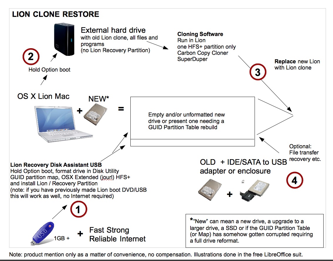2: You have two options depending upon if your Mac had Snow Leopard previously. If it did, then you can go the above Restoring OS X - 10.6 "fresh install method" and then make a clone, then update to Lion via the AppStore with a very strong, reliable, fast Internet connection.