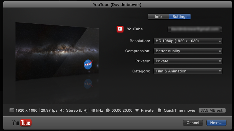 9) Use this new password with your existing username in FCPX and it will login to the YouTube Account.