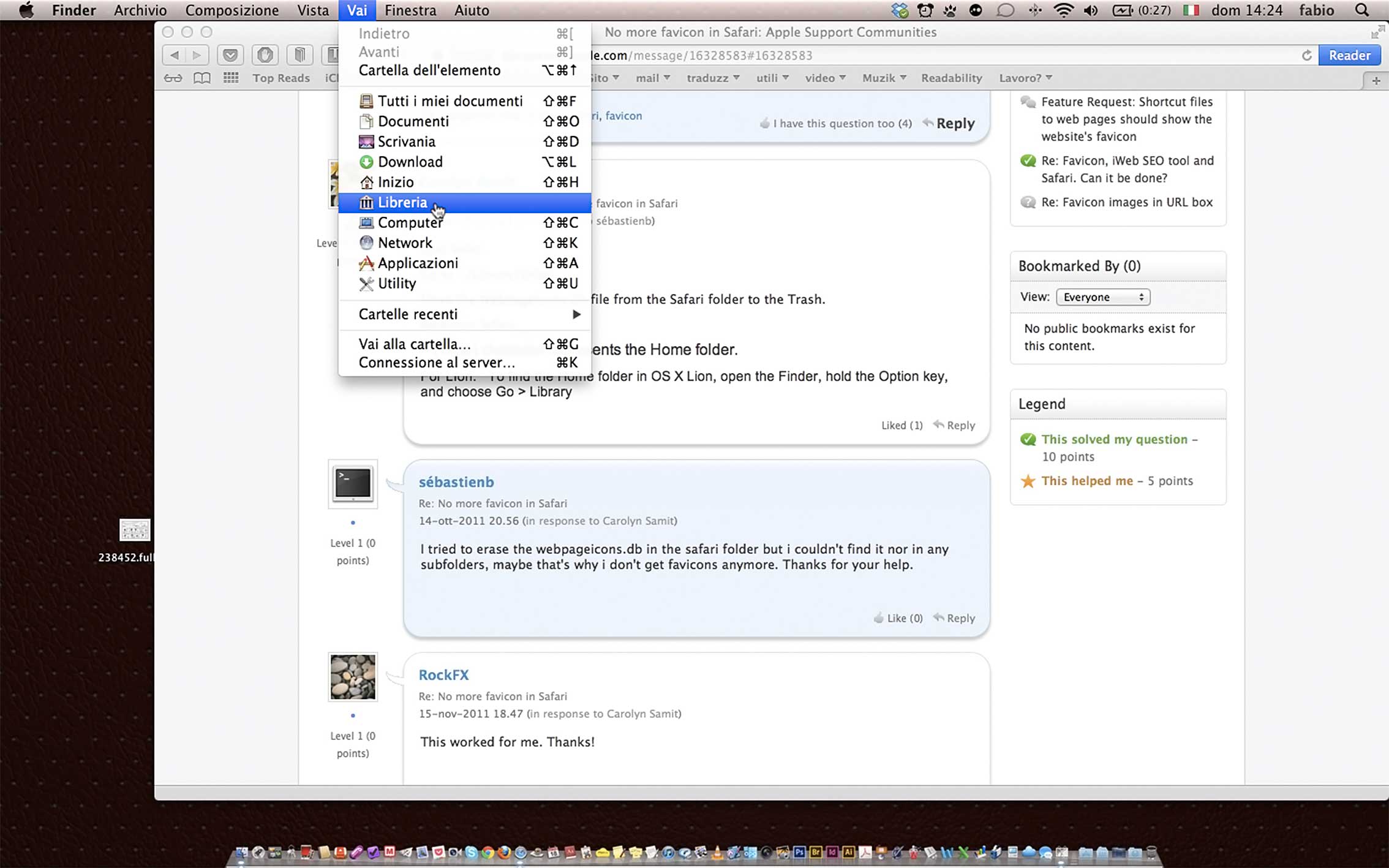 I run Safari 5.1 on Lion and all the favicon on my bookmarks and on the adress bar disappeared. Now i have only the blue globe. Does someone have any idea why and how to make them come again? I tried to empty the cache, remove the cookies... No change.