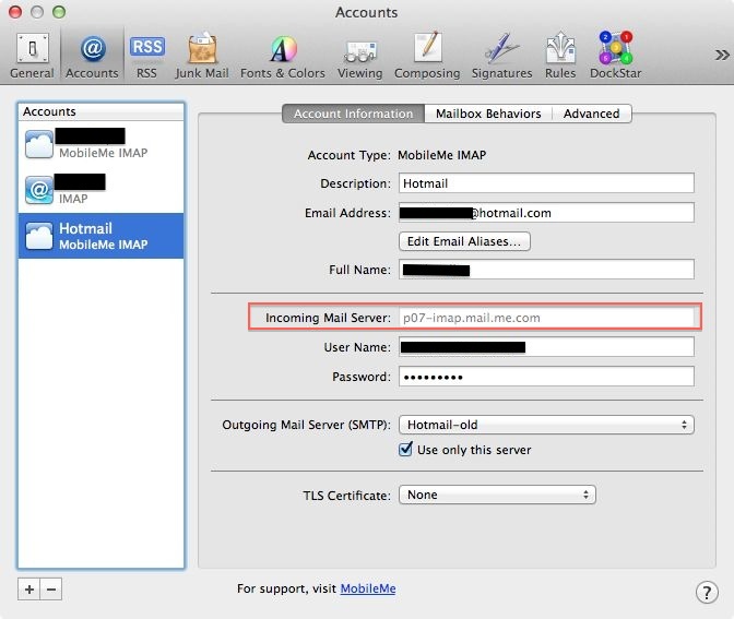Host Name - p99-imap.mail.me.com (if that is what is listed in OSX)