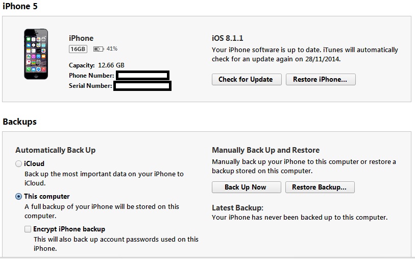 1. When you first plug your phone in you will have your back up window come up with different options.