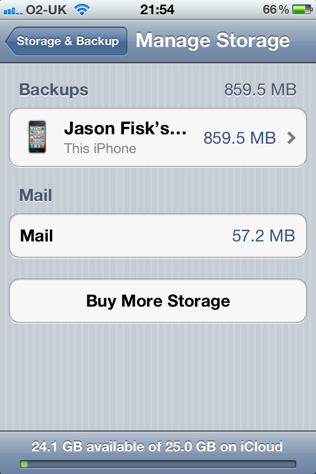 Then in Settings/iCloud/Storage & Backup. I noticed that 'iCloud Backup' was already on, i then tapped 'Start Backup'.