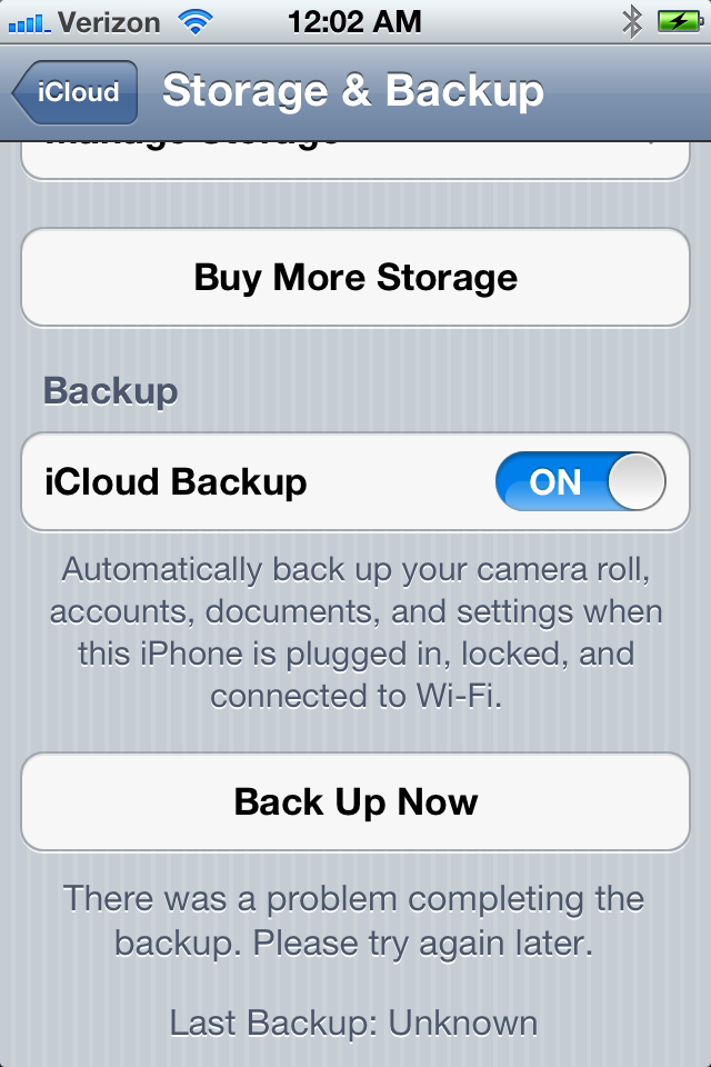 - I tried about 25 times unsuccessfully to get my devices to back up the first time - usually trying both my iPhone and iPad at the same time. When I was successful it was by following the instructions above, but only doing one device at a time.