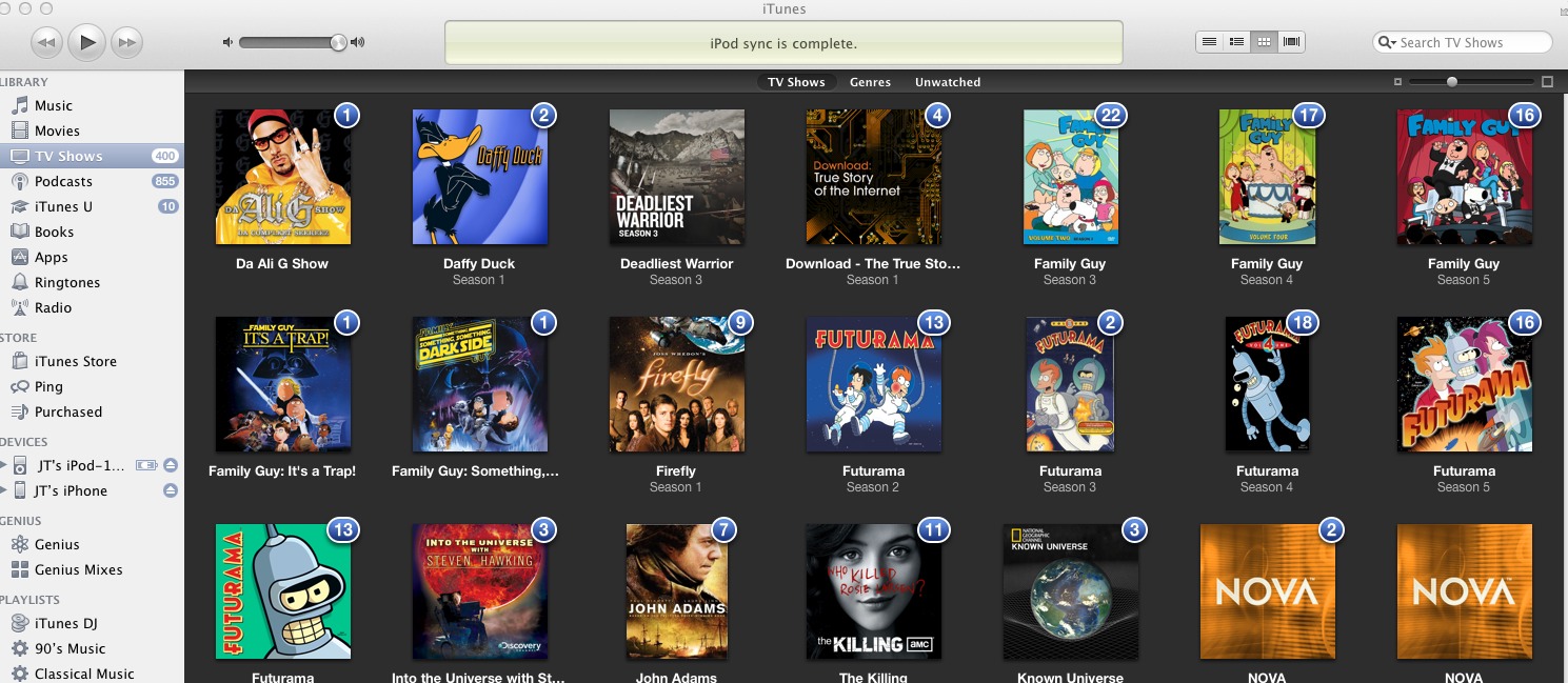 1. In iTunes, go to your TV Shows and sort/group them by seasons.