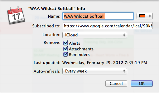 By the way... If you want to subscribe to a Google calendar on only one iOS device, take the link you copied in the above step, paste it into an e-mail, and send it to yourself. (There are other ways to get the link to your iOS device, but this is probably the easiest.) On the iOS device, open the mail, click on the link, and Calendar will ask if you want to subscribe to the shared calendar. This type of sharing has been there for a long time, and still exists. But if you want to have a calendar subscription on all of your (multiple) iOS devices, you have to repeat the subscription step on every device. Locating the subscription on iCloud (as described above) eliminates this issue.