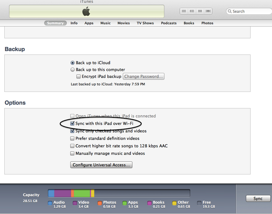 @JasonVRN - do you have iTunes selected to open when the iPad is connected? That option is right above the WiFi sync option in the photo below. I do not use that option, but that may be the reason it keeps opening. I really don't know how that option works now with WiFi sync. I never used it to begin with - ever. I always open iTunes on my own and I never did auto sync either. I always initiate the sync myself.
