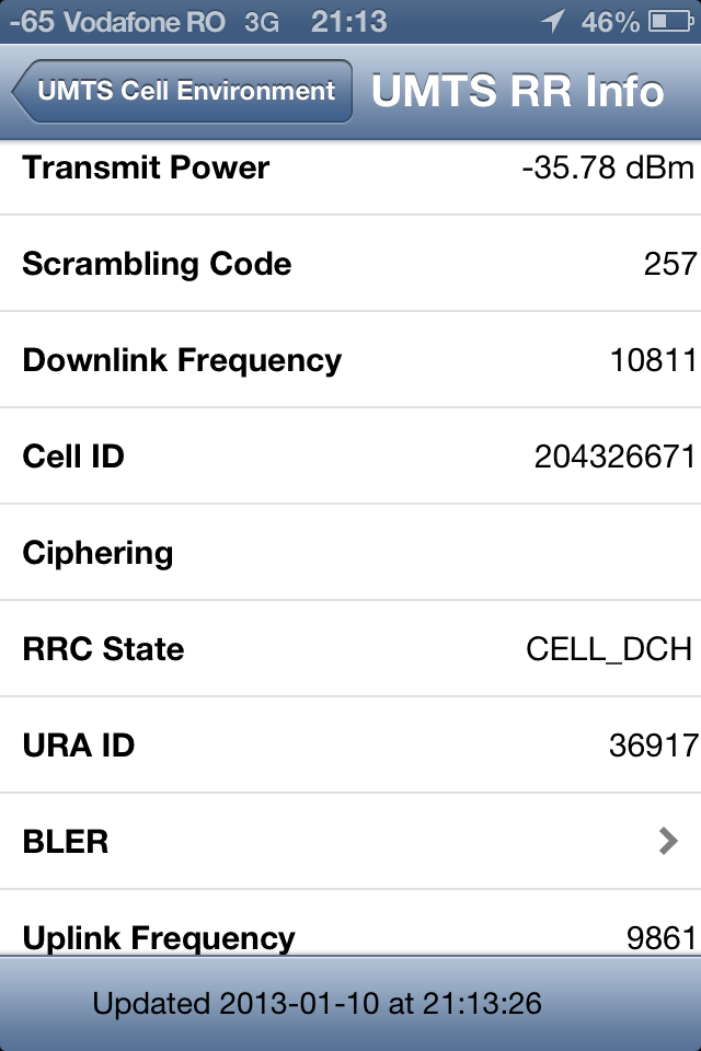 2. open field test mode (on iOS 6.0.1 dial *3001#12345#* then UMTS Cell environment > UMTS RR Info)