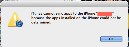 iTunes cannot sync... apps installed on the iPhone could not be determined.